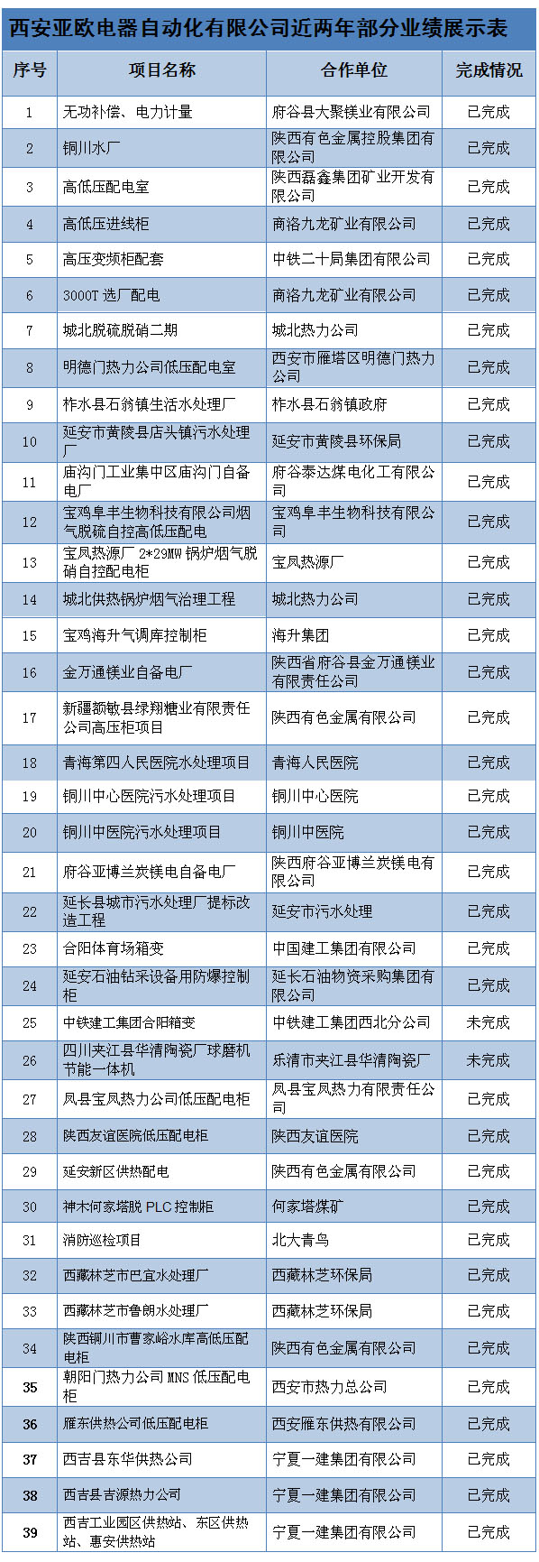 西安亞歐電氣設備集團有限公司近兩年部分業(yè)績展示表